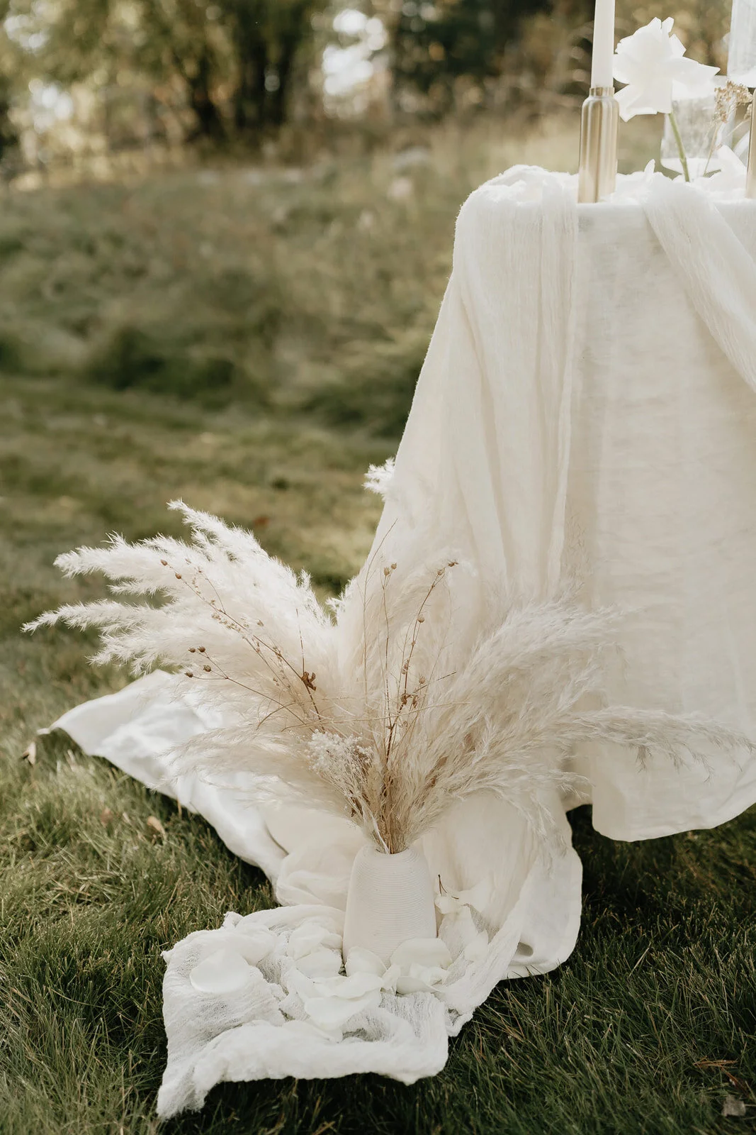A modern elopement set against the vast Wyoming landscape. featuring a beautiful combination of fresh full blooms, dried and preserved elements in an earthy palette of rust, ivory, cream and beige.